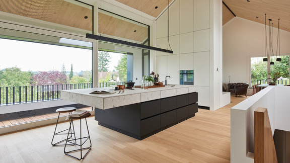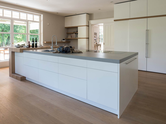 Minder is meer in de Scandinavische keuken - en dit geldt ook voor de elektrische apparaten en elementen zoals de gootsteen en afzuigkap. Voor het gewenste rustige totaalbeeld zijn inbouwapparaten ideaal, omdat ze bijna naadloos in de lijn passen. Een kookplaat met een geïntegreerde afzuigkap absorbeert stoom en geurtjes direct waar ze ontstaan en creëert een schone, elegante look. Voldoende opbergruimte die zo afgesloten mogelijk is en een goed doordachte indeling van kasten en apparaten maken efficiënt ruimtegebruik mogelijk.