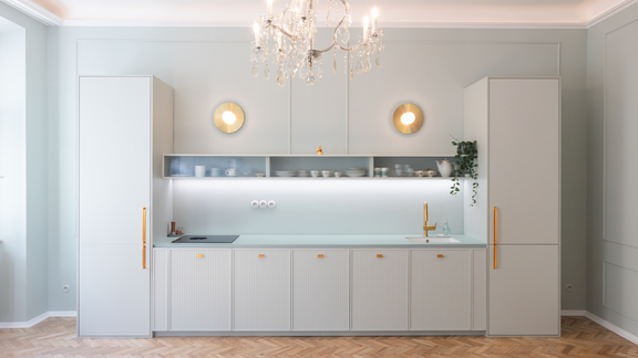 De typische designkenmerken van de Scandinavisch geïnspireerde keuken passen zowel bij open woonconcepten als bij klassieke keukens in kleine ruimtes. Minikeukens zijn om verschillende redenen bijzonder geschikt voor de Scandi keuken: Door het lichte kleurenconcept en de dunbevolkte oppervlakken lijken kleine gebieden groter en donkere gebieden lichter.