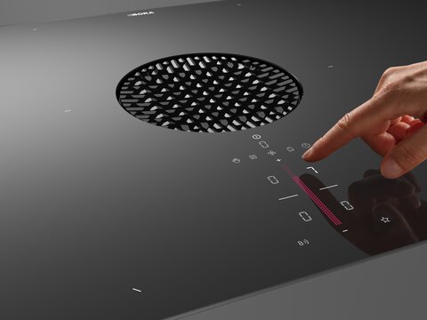2. De bediening. Het tot nu toe monochrome digitale touch display maakt met kleurwissels de bediening nog overzichtelijker. Centraal aan de voorzijde geplaatst, houdt de bedieningseenheid veel ruimte over voor royale kookzones. De nieuwe, driekleurige sControl+-besturing biedt meer duidelijkheid: wit voor functies, rood voor warmte-instellingen en blauw voor de afzuiging. Na de introductie in 2024 bij het brede BORA X Pure-model (voor 90 cm kasten) zijn nu ook S Pure (60 cm), M Pure en Pure (beide 80 cm) voorzien van deze intuïtieve logica.