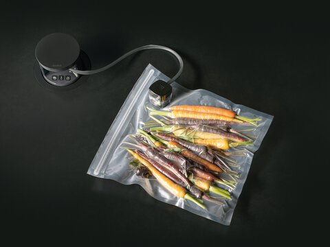 In Europese huishoudens wordt jaarlijks ongeveer 32 miljoen ton voedsel weggegooid. Met vacumeren hebben consumenten – naast inmaken, drogen of roken – een tijdbesparende methode om een deel hiervan langer houdbaar te maken. Door levensmiddelen te vacumeren met de BORA QVac blijven verse producten aanzienlijk langer eetbaar – tot wel drie keer langer dan bij traditionele opslag zonder luchtonttrekking. Tegelijkertijd blijven aroma’s, smaak en structuur optimaal behouden en blijft het natuurlijke karakter van de producten gewaarborgd. Vacumeren beschermt tegen invloeden van buitenaf, vocht en geuroverdracht – ideaal bijvoorbeeld bij bewaring in de koelkast. Wat veel mensen nog niet weten: in de vriezer beschermt vacumeren betrouwbaar tegen vriesbrand en behoudt het de kwaliteit van het voedsel – zonder ijskristallen, uitdroging of smaakverlies.