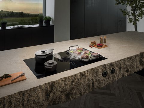 Good light plays a crucial role in the kitchen as a living space as it ensures optimum lighting when cooking and a pleasant atmosphere when dining. Factors such as the orientation, light colour and light intensity have a direct influence on the atmosphere in the room and thus on our well-being. Brightness and light colours affect our eating behaviour and our mood: neutral white light perks us up in the morning whereas warm white light has a calming effect. With the various models and settings of the new BORA Horizon and BORA Stars pendant lights, the BORA lighting range creates the perfect lighting for every situation.