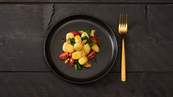 Add the prepared vegetables and gnocchi to the pan and sauté for about 5 minutes. Season with salt, pepper and nutmeg.