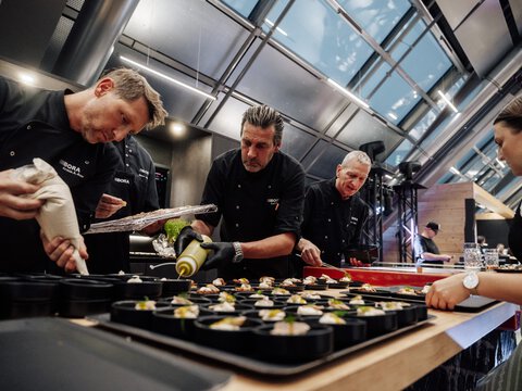 Everything in-house, no service providers – the BORA team spirit fully comes into this: product presentation, sales and display advice, live cooking show, evening catering and drinks service. For this important product presentation, the sales team and the six-strong BORA Herford team are supported by colleagues from the Raubling and Niederndorf sites – from accounting to customer service and human resources to marketing. A special highlight throughout the week for everyone is the BORA Wiesn, which takes place in a style similar to the Munich Oktoberfest on five evenings from 20 to 24 September from 6 p.m. – it goes without saying that the BORA team will be wearing the traditional outfit. It's all the more wonderful that many retail partners also came dressed accordingly last year.