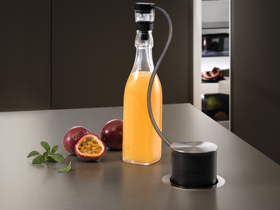 Zaradi inovativnega in edinstvenega koncepta namestitve BORA QVac ne zavzema prostora na delovnih površinah v kuhinji: nameščena je pod BORA sistemom odvoda pare, in sicer pod delovnim pultom. Vgrajena vakuumirka omogoča nasadno montažo ter montažo, pri kateri je aparat v isti ravnini s pultom.