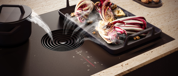 Kombinera spishäll och ångsug individuellt, helt fritt efter dina egna matlagningspreferenser: från flexinduktion över gas och Tepanyaki-grill i rostfritt stål till wokhäll.