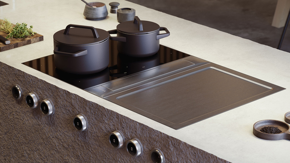 Välj våra största spishällar med 540 mm djup allt efter dina matlagningspreferenser: från flexinduktion till gasspishäll eller Tepan-grill i rostfritt stål som alla kan kombineras fritt med ångsugssystemet. Det är även möjligt att kombinera en, tre eller fler spishällar.